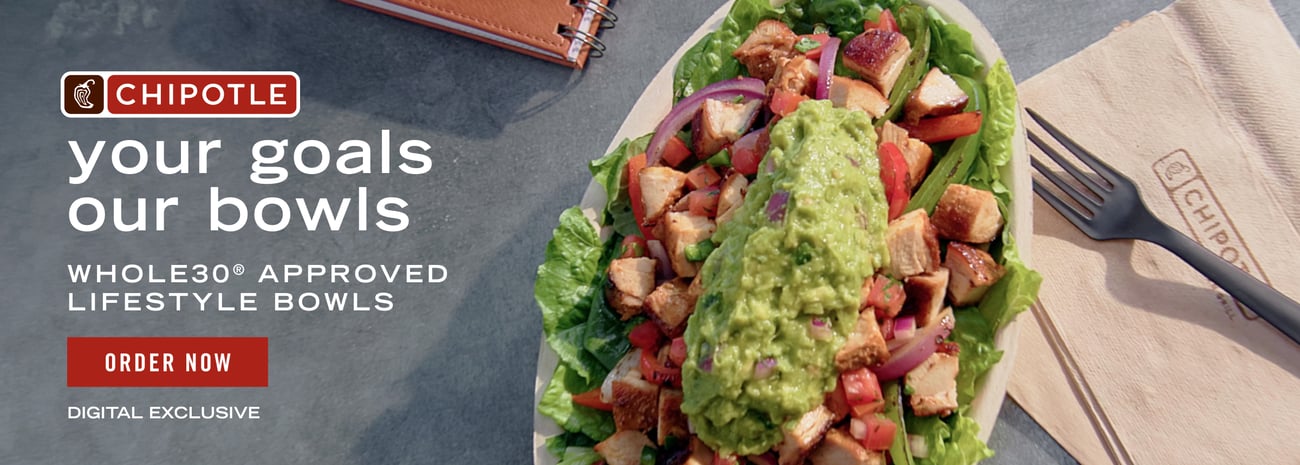 Whichever phase of your Whole30 journey you’re in, the Wholesome Bowl makes it easy to grab a delicious, nourishing meal without the guesswork or hassle. Open the Chipotle app or head to Chipotle.com, tap the Lifestyle Bowls menu, and select the Whole30 Salad Bowl for pick-up or delivery.