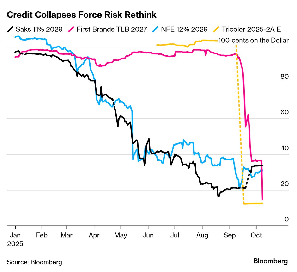 Borrower beware: It is, by almost any measure, a golden era for US credit markets. Companies are selling debt at a near record clip and investors are pocketing the best returns in years. But in recent months, a flurry of meltdowns from Tricolor to Saks has exposed cracks in that edifice.