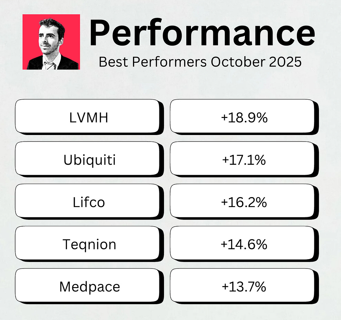 Best performersHere are the best performers of October: LVMH returns to growth after 4 quarters of decline. The stock price jumped after they published great results: |