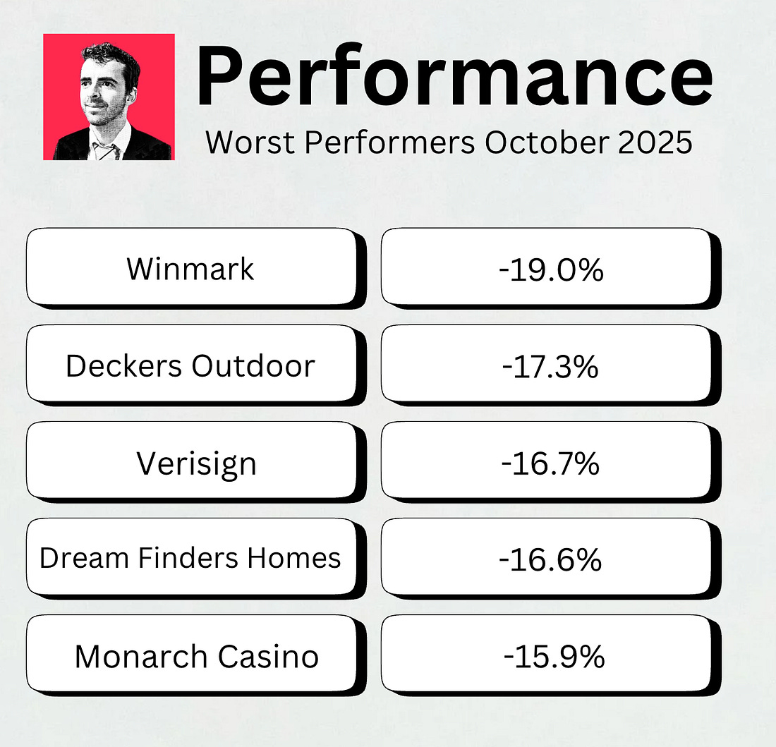Best & Worst PerformersThis overview shows you the best and worst performers in our investable universe. Worst performersThe cheaper we can buy great companies, the better. Here are the worst performers of the past month: Dream Finders Homes is starting to look interesting for investors with a higher risk appetite. The stock is currently trading around the same level as it was at the time of its IPO in 2021: