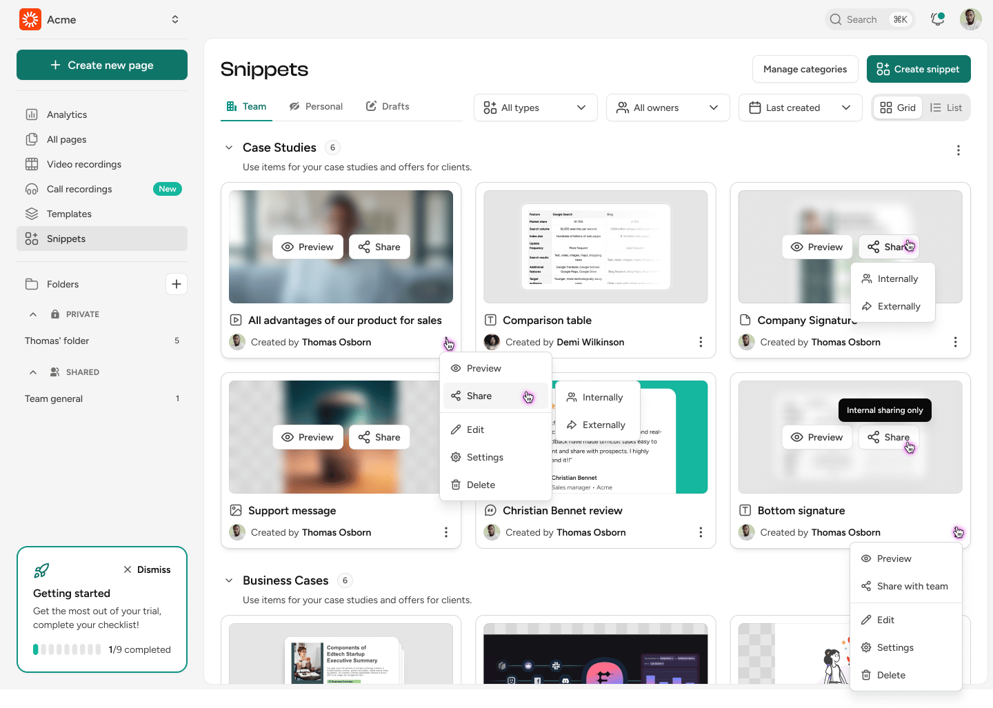 That killer case study? Share it with one click. Your perfect slide? Send it standalone. Every piece of content is now trackable—know exactly when the CFO opens your ROI calculator or when procurement forwards your security docs.