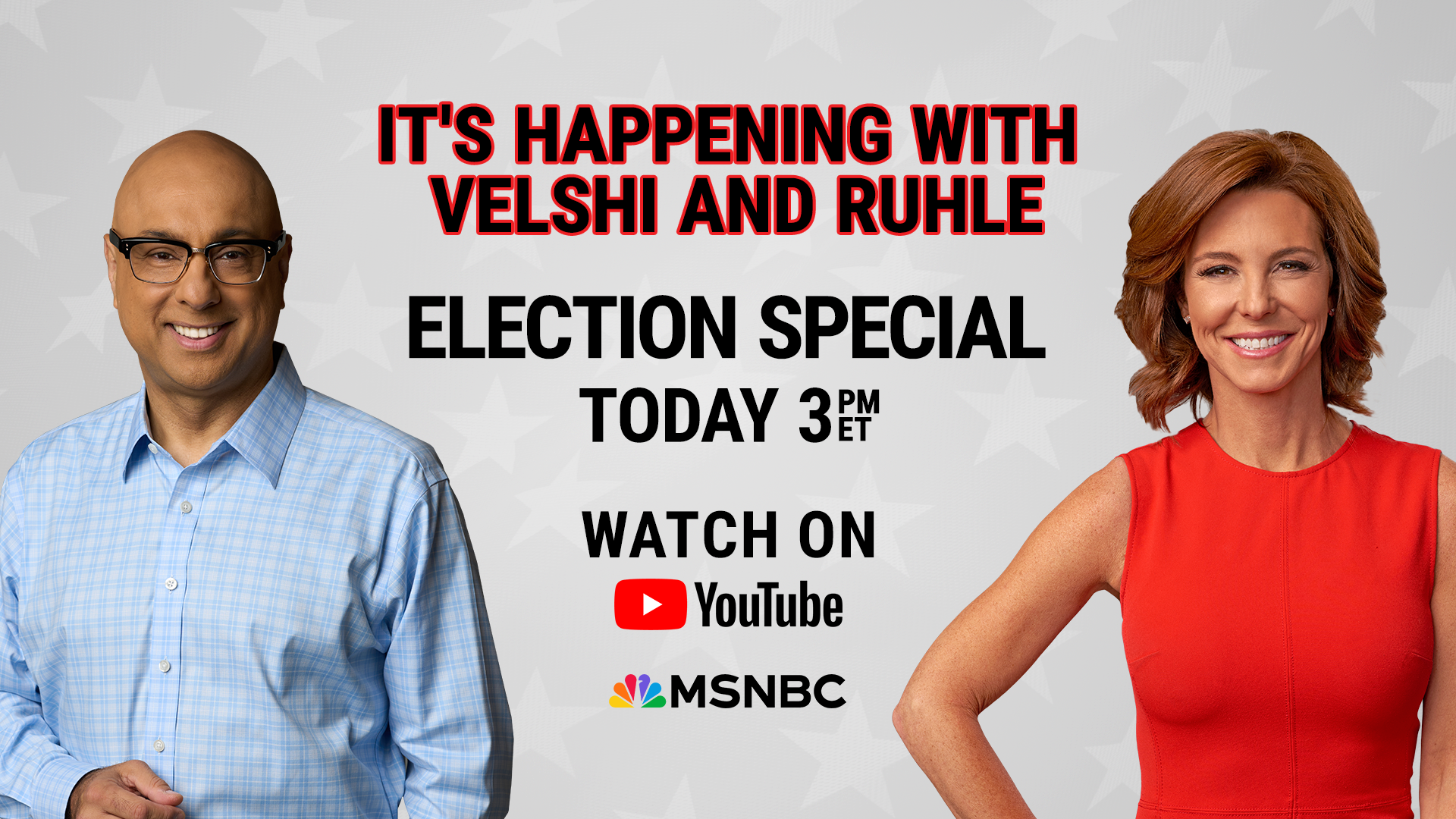 Today, Ali Velshi and Stephanie Ruhle are back for a special edition of “It’s Happening with Velshi and Ruhle,” where they’ll analyze the results of the election and answer your questions live. Click here to tune into their conversation live on YouTube today at 3 p.m. ET. |