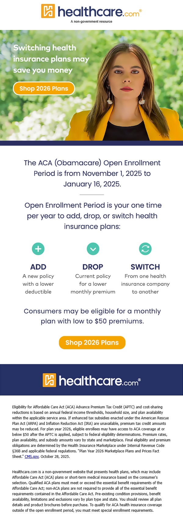 | Trouble with formatting? Open the email in your browser here Shop 2026 ACA(Obamacare) Plans ee is a perennial plant with an elongated stem, or trunk, usually supporting branches and leaves. In some usages, the definition of a tree may be narrower, e.g., including only woody plants with secondary growth, only plants that are usable as lumber, or only plants above a specified height. Wider definitions include taller palms, tree ferns, bananas, and bamboos. Trees are not a monophyletic taxonomic group but consist of a wide variety of plant species that have independently evolved a trunk and branches as a way to tower above other plants to compete for sunlight. The majority of tree species are angiosperms or hardwoods; of the rest, many are gymnosperms or softwoods. Trees tend to be long-lived, some trees reaching several thousand years old. Trees evolved around 400 million years ago, and it is estimated that there are around three trillion mature trees in the world currently. A tree typically has many secondary branches supported clear of the ground by the trunk, which typically contains woody tissue for strength, and vascular tissue to carry materials from one part of the tree to another. For most trees the trunk is surrounded by a layer of bark which serves as a protective barrier. Below the ground, the roots branch and spread out widely; they serve to anchor the tree and extract moisture and nutrients from the soil. Above ground, the branches divide into smaller branches and shoots. The shoots typically bear leaves, which capture light energy and convert it into sugars by photosynthesis, providing the food for the tree's growth and development. Trees usually reproduce using seeds. Flowering plants have their seeds inside fruits, while conifers carry their seeds in cones, and tree ferns produce spores instead. Trees play a significant role in reducing erosion and moderating the climate. They remove carbon dioxide fro |