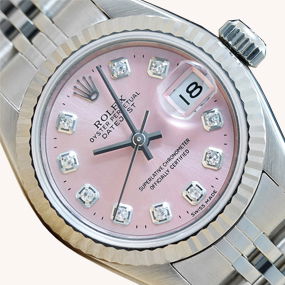 Rolex Ladies Datejust Pink Diamond 18K White Gold Stainless Steel Quickset Watch