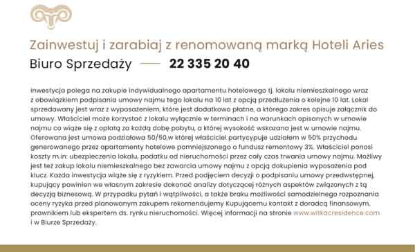 Wysłano na zlecenie:Witkac Residence Spółka z ograniczoną com odpowiedzialnością Sp.k., z siedzibą w Warszawie przy ul. Poleczki 23, NIP: 736-17-32-024.