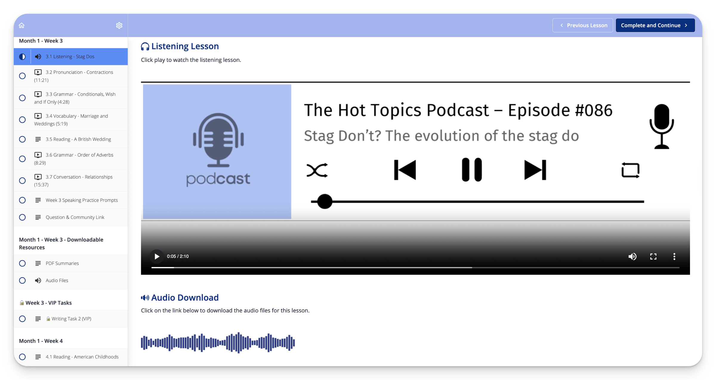 Let me show you an example from Week 3 of my B2 programme. This is from a podcast episode transcript: