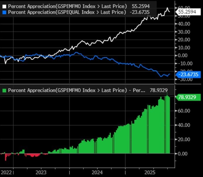 The reason? Everything that is not AI or momentum related is having a hard time nowadays. Just look at this chart shared by my friend Michael Gielkens (Partner of Tresor Capital): How to read this chart?