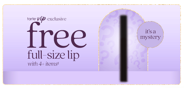 ‡Free mystery lip with 4+ item purchase is valid only on https://tartecosmetics.com/ for logged-in tarte™ VIP members. To qualify, add at least 4 items to your cart. The free gift will be automatically added to eligible carts. Gift is preselected and cannot be substituted or exchanged - selection may vary by order. Limit one mystery lip per order. Offer applies to in-stock items only and is valid while
