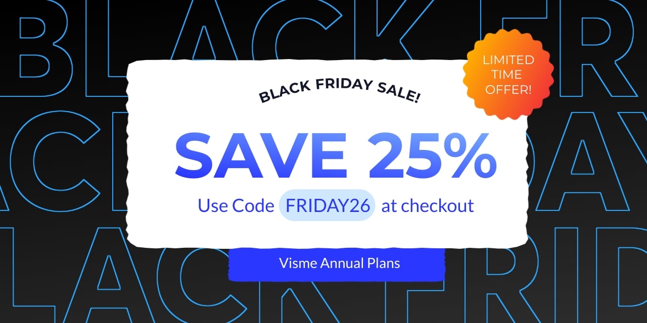 For a limited time (today through Sunday, November 30th) get 25% off Visme Premium annual plans to power up your design and brand marketing needs in less time.