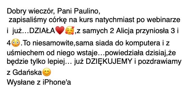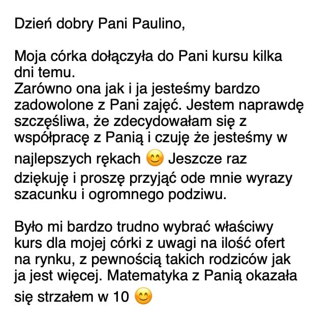 Opinia 1 - Mama uczennicy (zapisała kilka dni temu):