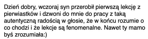 Po PIERWSZEJ lekcji był tak podekscytowany, że zadzwonił do mamy do