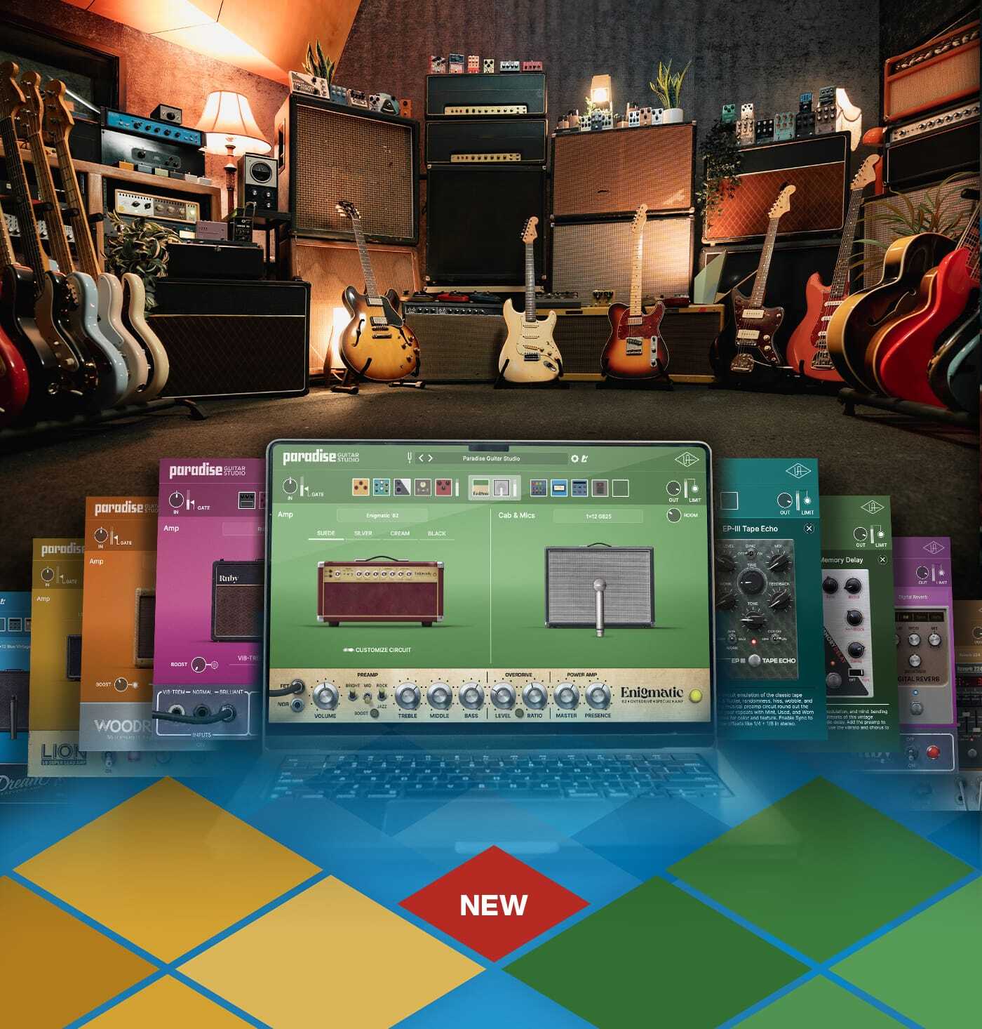 Get the best recorded guitar tones of your life with our new Paradise Guitar Studio. Built upon renowned UAD analog modeling technology and a fast, friendly interface, Paradise lets you drag‑and‑drop your way to tonal nirvana.