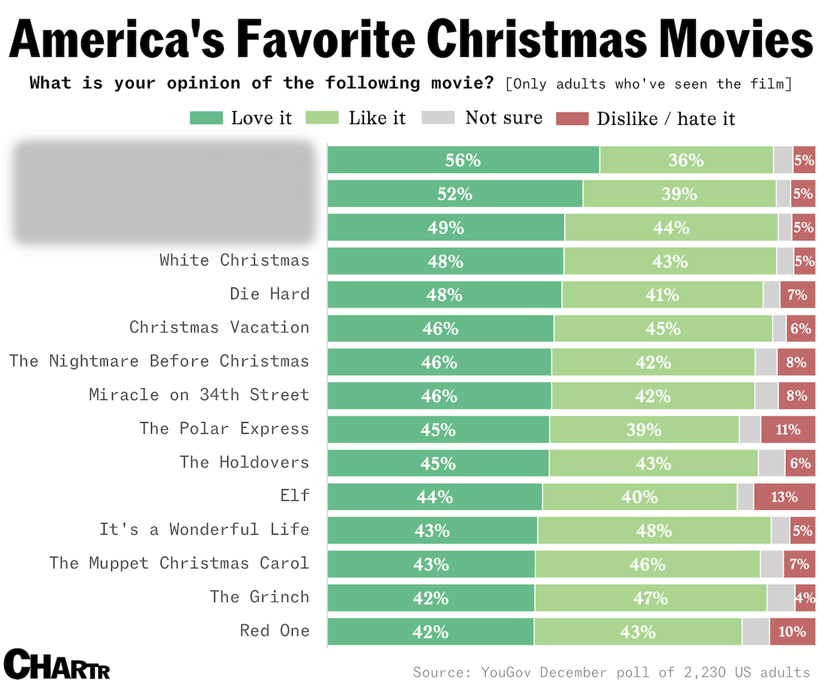 Off the charts: What are America’s top three favorite Christmas movies? [Answer below]. |