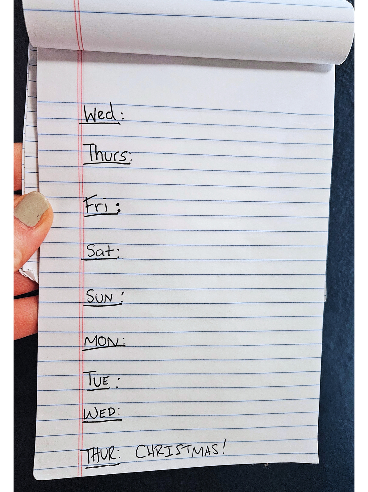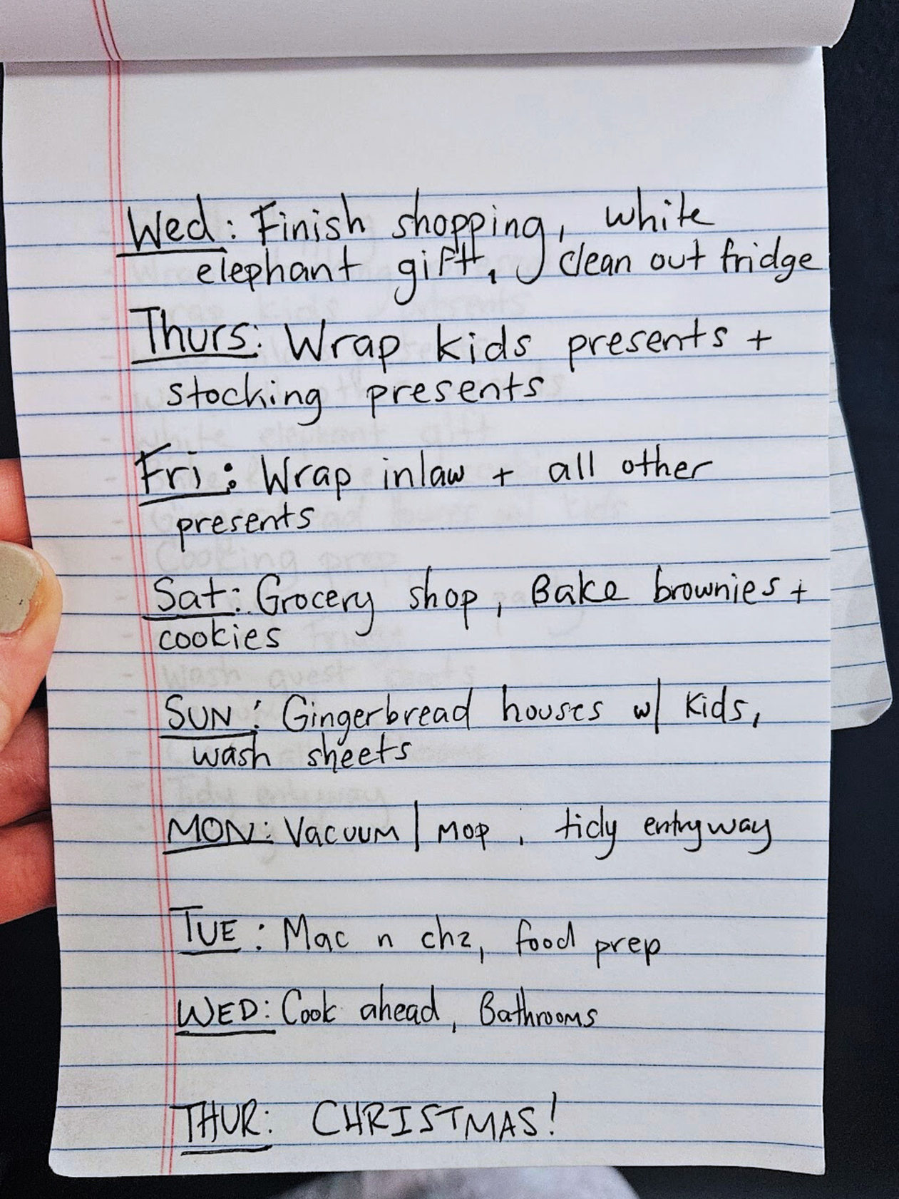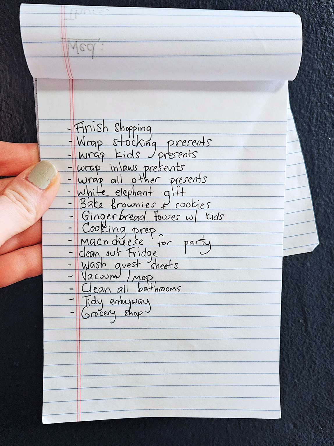 Now, on a separate page, make your to-do list and write down everything that needs to get done between now and Christmas.