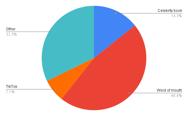 Word of mouth matters most for book sales. Listicles and reviews got zero votes in this category.