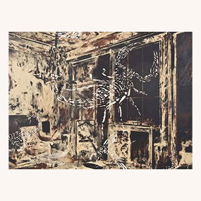 James Drake, Salon of a Thousand Souls is one of Drake's most magnificent lithographic images. It is offered in a black wooden flat profile frame, and is ed. 16/20. Published by Landfall Press in 1997. Drake has achieved many accolades in the art world, including a Guggenheim and several NEA awards and grants.