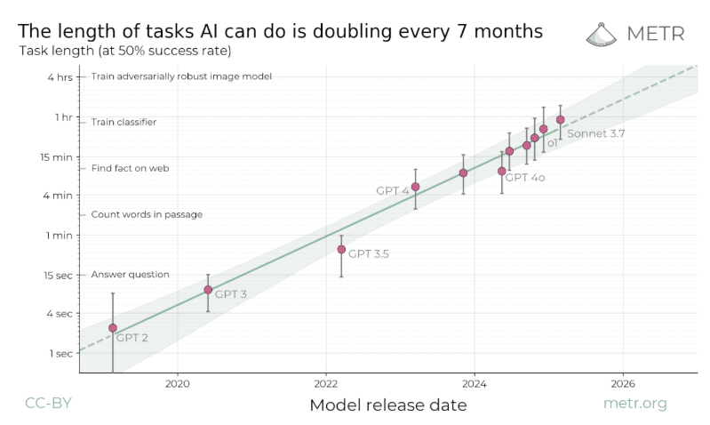 The last seven days (since my previous email) have shown that the "length of tasks AI can do is doubling every 7 months."