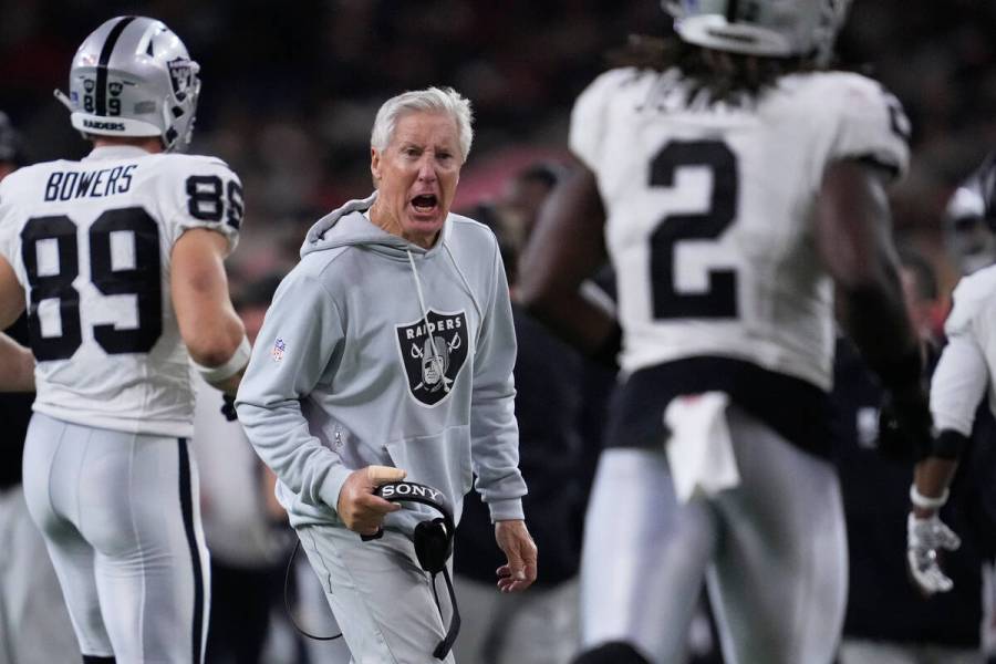 Raiders coach Pete Carroll responds to questions about job security A 2-13 ...