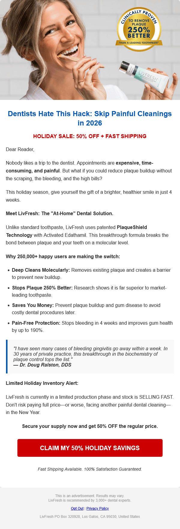 LivFresh cleans teeth like the dentist