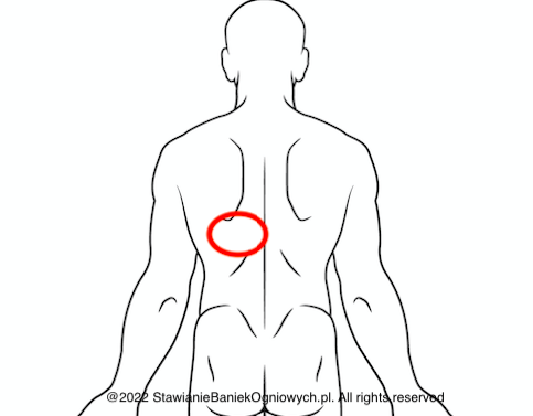 Zwróć uwagę na zdjęcie poniżek, gdzie zaznaczony jest obszar Th8-Th9 (połowa kręgosłupa). Jeżeli zauważysz, że po lewej stronie, w okolicy podłopatkowej, pojawiło się wyraźne wynaczynienie, może to wskazywać na zaburzenia w pracy żołądka.