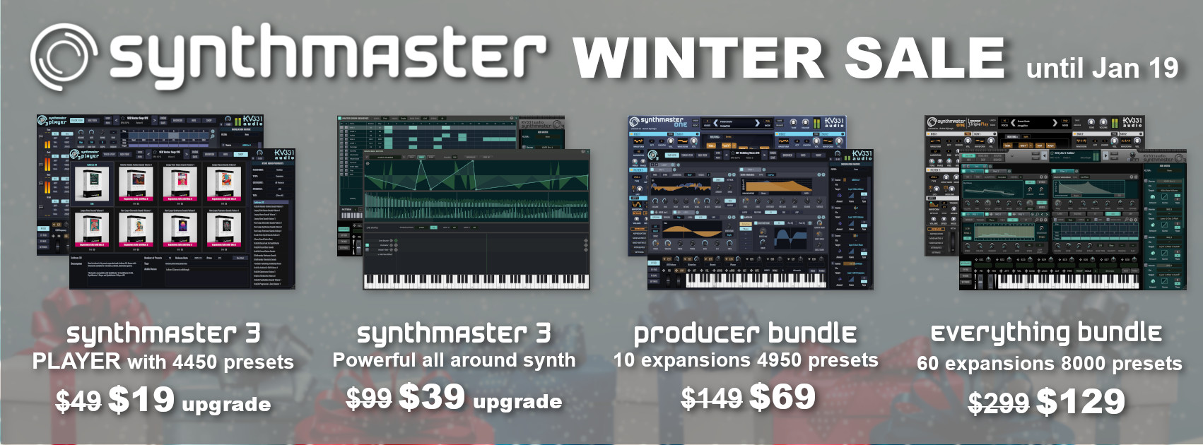 The new year is already here, and unfortunately we are coming to the end of our Winter Sale. The sale is ending on January 19, so you still have 10 days left to take advantage of our great discounts! Here is a list of products you can upgrade as a SynthMaster Player user:
