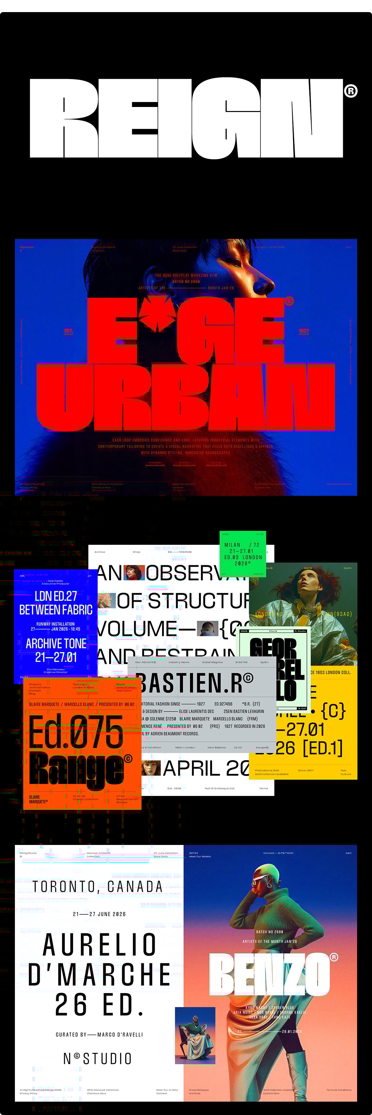 Introducing — Reign is a bold display typeface designed to command attention. Featuring 45 styles across five widths, from Ultra Condensed to Normal, and nine weights, from Thin to Black, Reign offers a highly flexible system for impactful headlines and expressive layouts.