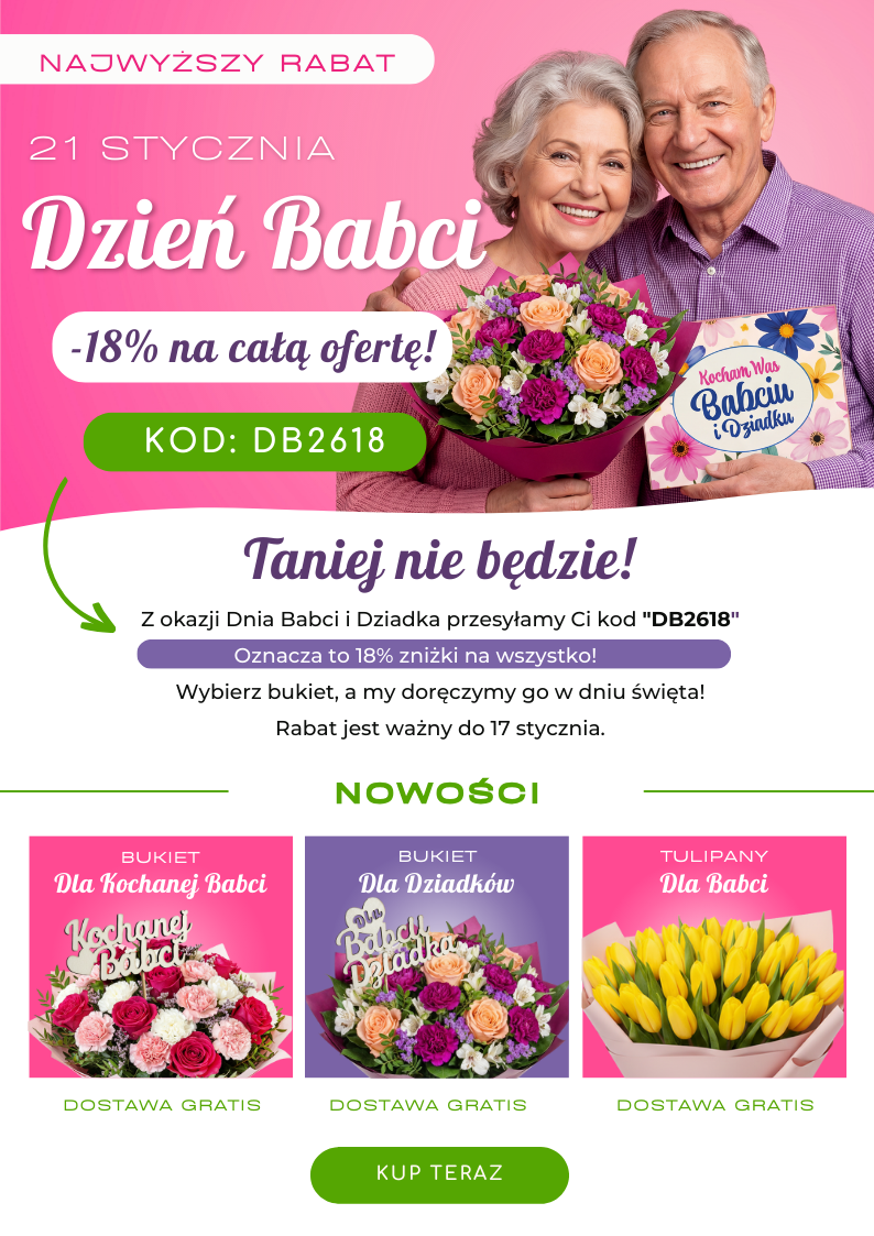Kod DB2618 obniża cenę o 18% i jest ważny do niedzieli 18.01 godz. 23:59