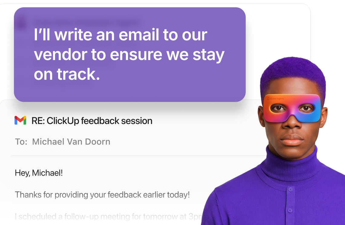 Super Agents manage, draft, and send clear, accurate emails based on context in ClickUp.