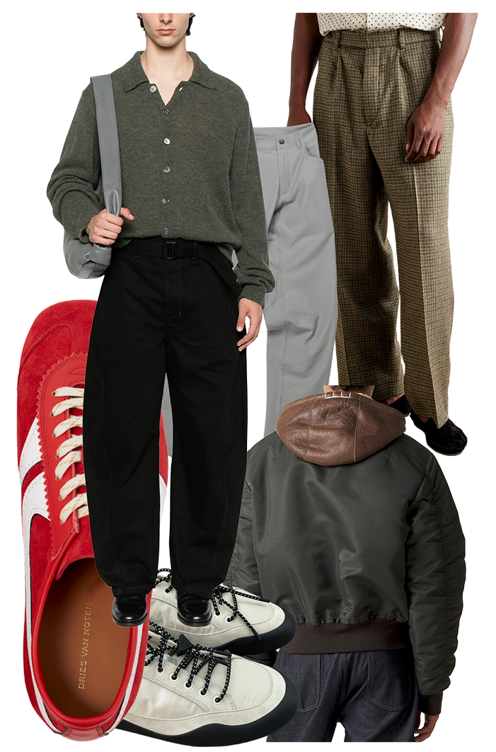 Another key motif popping up in houses big and small — from Zegna to the 2025 LVMH-prize winner SOSHIOTSUKI — is wool: handsomely suited, layered, houndstooth'd. For your wardrobe purposes, we recommend beginning with a linchpin, like these Bode trousers. |