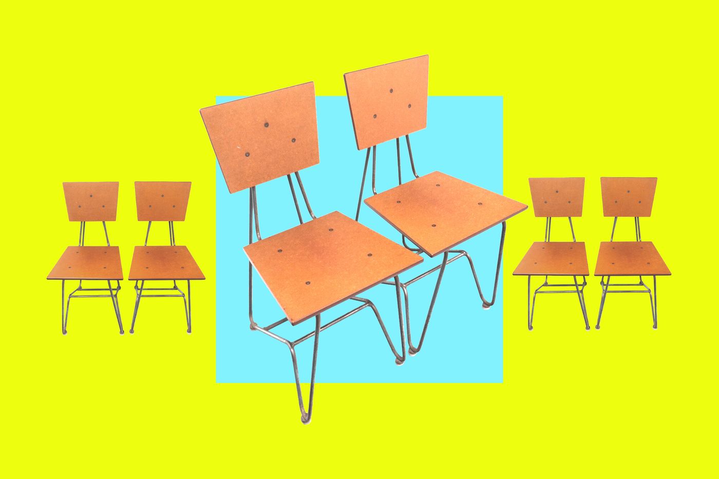 Chipotle arrived like a lightning bolt in 1993, bringing its approximation of Mexican food and an industrial, minimalist aesthetic to a fast-food scene cluttered with bric-a-brac and cartoony maximalism. Now the generation raised on the chain’s burrito bowls are buying, flipping, and hoarding the chairs where they first ate them. Versions have appeared at auction in Florida, on Chairish and 1stDibs (where they were listed as “Modernist Iron and Ply Dining Chairs”). A set of ten went for somewhere between $700 and $1,200 on Invaluable.