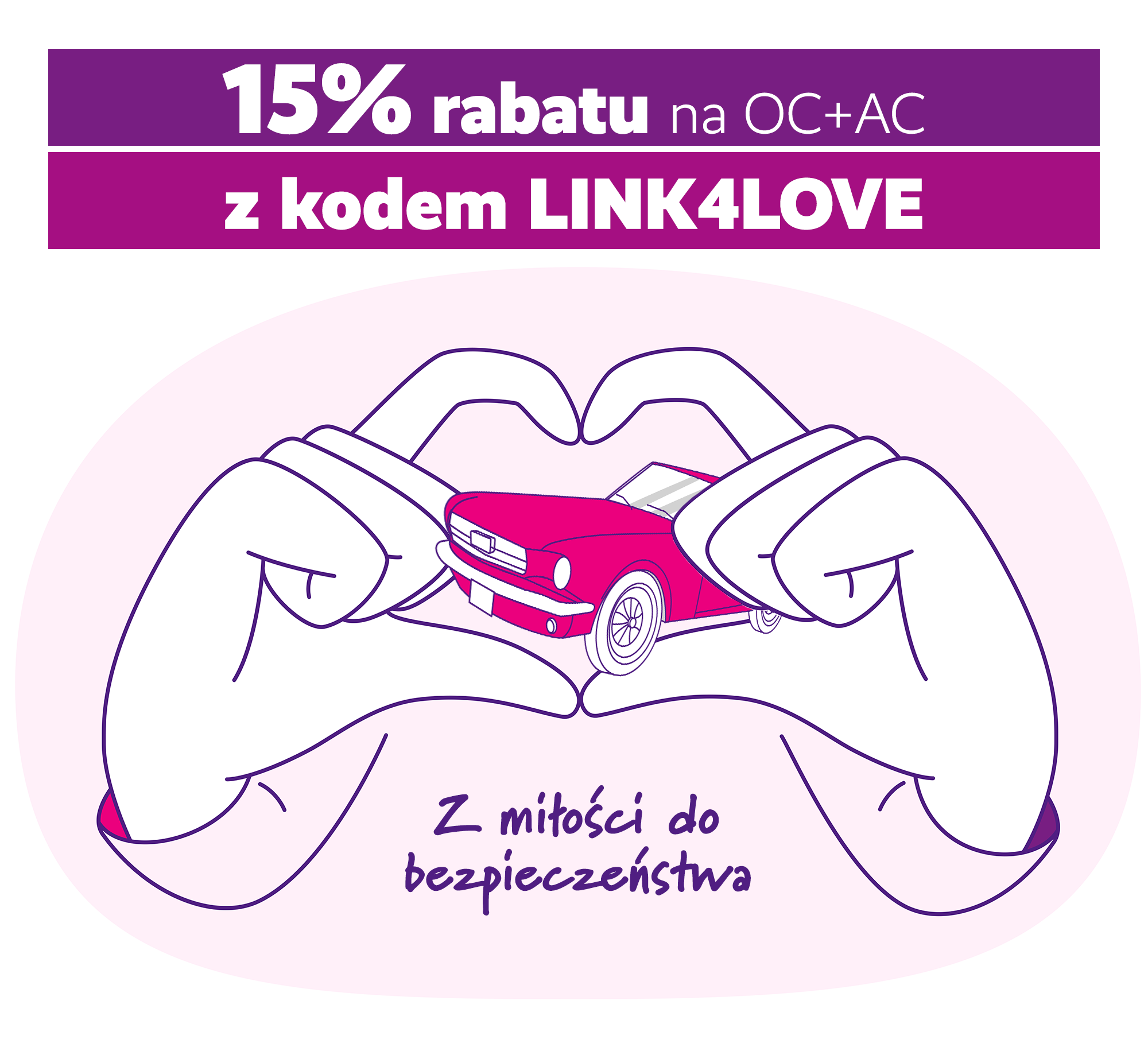Promocja dla aut nie starszych niż 10 lat, dla nowych, indywidualnych klientów na zakup ubezpieczenia komunikacyjnego OC+AC. Rabat obowiązuje po wpisaniu kodu LINK4LOVE. Nie łączy się z innymi rabatami. Okres trwania promocji od 06.02 do 28.02.2026.