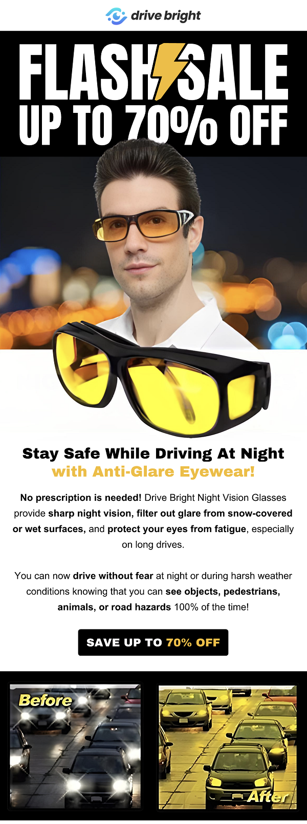 Stay Safe After Dark - Drive Bright Anti-Glare Glasses 50% Off!
