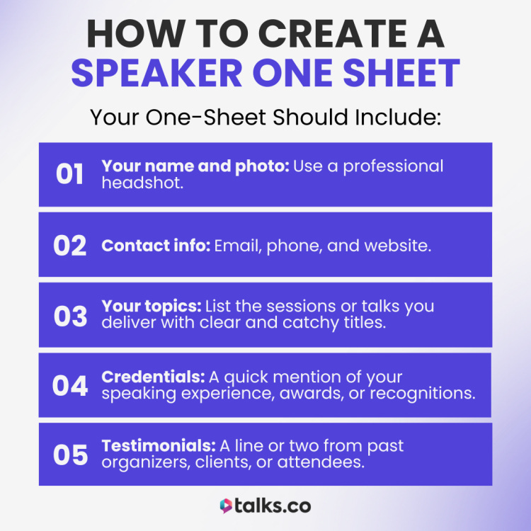 Every introduction is frictionless when your one sheet works. Every hesitation kills momentum when it doesn’t. The speaker one sheet examples don’t just show what works visually. They reveal what makes movement possible. One page, structured, readable, instantly interpretable. The difference between being booked or being ignored.