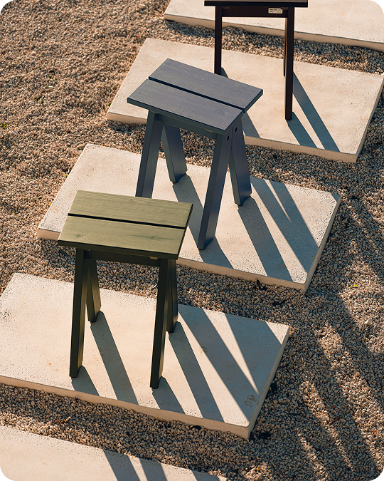 A modern outdoor furniture made for easy, everyday use on terraces and in gardens. Crafted from lightweight yet sturdy pine wood, each piece is finished with a weather-resistant lacquer in soft tones that harmonize with outdoor surroundings.