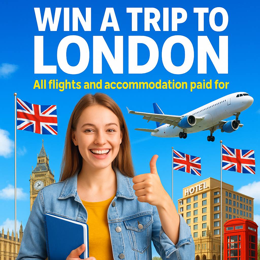 If you purchased your English course via one of "Daily Deal Partners " simply leave a short review of your experience on the partners site ( ie Groupon , Showroom etc) and you’ll automatically be entered into the draw to win a trip for two to London!