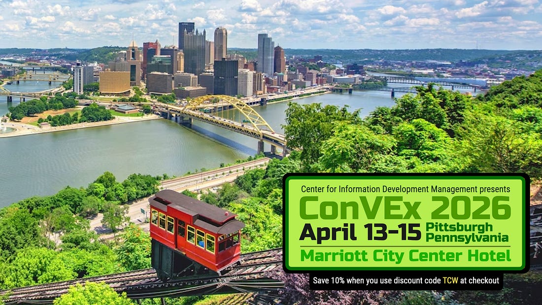 That kind of access is valuable whether you are actively evaluating solutions or simply trying to understand what is possible today and in the near future. It is also a useful antidote to marketing language, which too often suggests that every platform on earth has “revolutionized” everything except maybe the hotel shampoo. 🧴 This Is An Important Event For Our ProfessionConVEx matters because it brings together the people, ideas, and tools shaping the future of technical documentation. The profession is changing. Big time — and quickly. Tech writers are being asked to support more channels, more complexity, more automation, and more business value than ever before. We’re also being asked to think beyond documents and toward systems of knowledge delivery. We’re being pushed to understand AI, structure, semantics, governance, and orchestration in ways that would have sounded oddly futuristic just a few years ago. ConVEx provides a place to engage those changes seriously. It helps attendees sharpen their understanding of the field, expand their network |