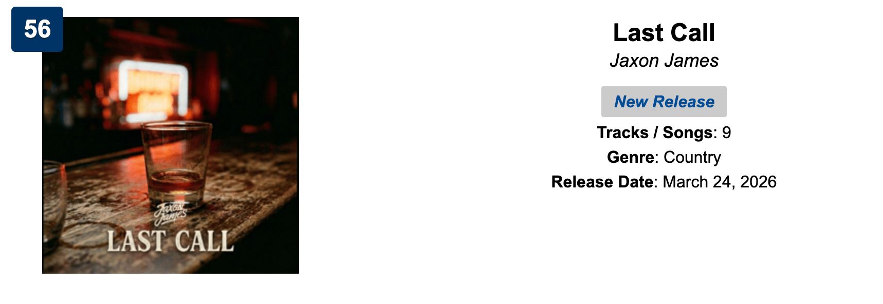 We're already at #56 on the iTunes Top 100 US Country Albums.