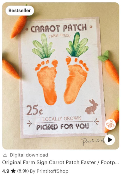 The handprint art printable pictured has received an estimated 150,000+ views since it was listed on Etsy.