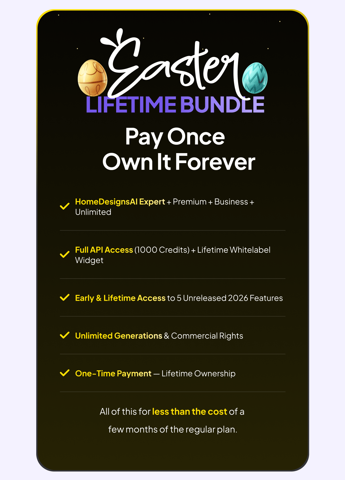 Tomorrow, we’re opening a One-Time Lifetime Access Bundle that gives you everything inside HomeDesignsAI… forever.