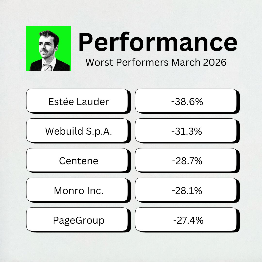 Investors are in Extreme Fear today according to the Fear & Greed Index: Best & Worst PerformersThis overview shows you the best and worst performers in our investable universe. Worst performersThe cheaper we can buy great companies, the better. The biggest decliner this month? Estée Lauder, losing 38%. Estée Lauder is a prestige beauty company that makes and sells high-end skincare, makeup, fragrance, and hair care products under brands like La Mer, Clinique, and M·A·C. Estée Lauder fell this month due to merger uncertainty and macroeconomic headwinds: