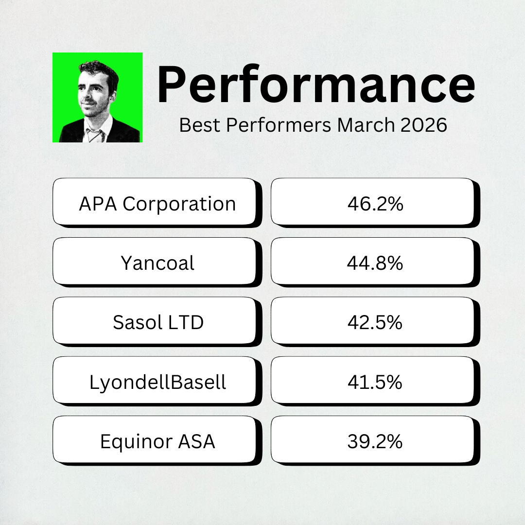 Best PerformersAPA Corporation was this month’s best performer, rising 46%! APA Corporation is an oil and ga |