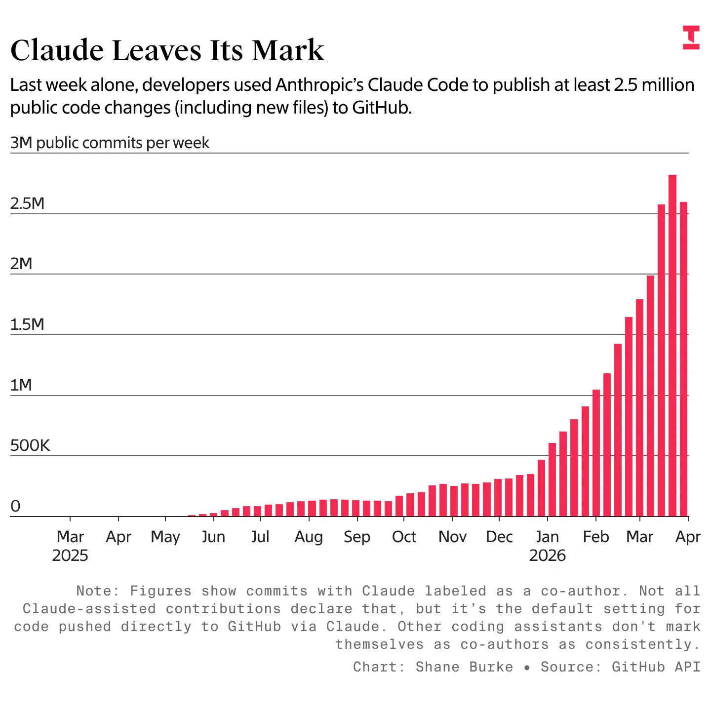 Another such metric is “pull requests,” or proposed changes to existing applications that developers are building. The number of pull requests submitted by AI agents on GitHub has swelled from around 4 million in September to over 17 million in March, Daigle said. Public data paints a similar picture: the weekly number of times Claude Code has committed code to public GitHub projects has increased nearly twenty five-fold in the past six months, from around 100,000 to more than 2.5 million last week.