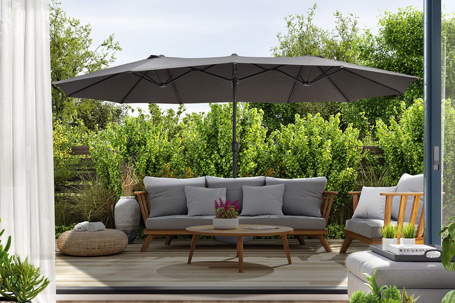 Dubbele parasol met beschermhoes - Lifa Garden |