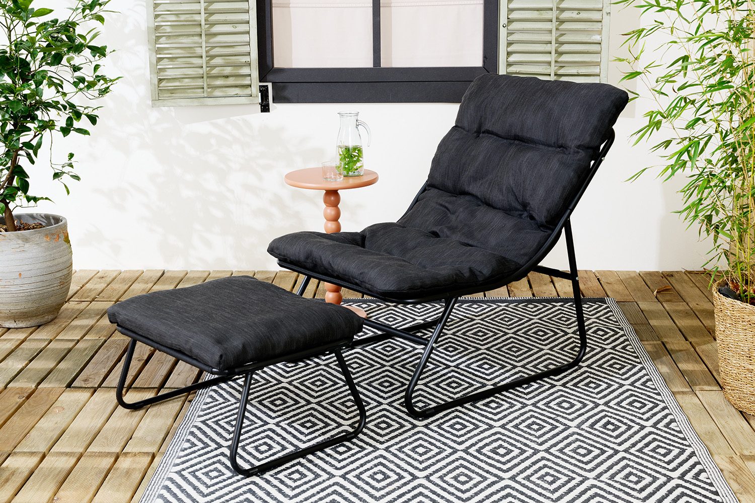 Loungestoel met voetenbank - Lifa Garden | Stijlvol zitten, heerlijk ontspannen | ✔️ Zacht zitgevoel: ondersteunende kussens ✔️ Optimale steun voor rug, zitvlak en benen ✔️ Moderne look en stijlvolle uitstraling | 79,95 | i.p.v. 179,95 - 56% | |