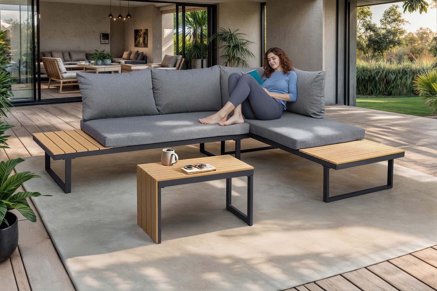 Loungeset Toscana met salontafel - Feel Furniture | Stel de loungeset op in 5 slimme opstellingen | ✔️ Van hoekbank tot losse zitplekken ✔️ Extra dikke zit- en rugkussens ✔️ Weerbestendige kussens | 449 | i.p.v. 799,95 - 44% | |