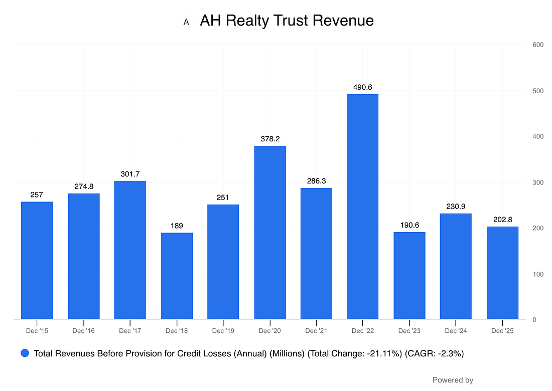 👋 Howdy Partner, Today we’re looking at a AH Realty Trust, a company undergoing a massive change. For years, this REIT built buildings, financed other people’s projects, managed apartments, and owned offices. It’s become much simpler recently, but is it an interesting company? AH Realty Trust is the new name for Armada Hoffler Properties. Armada Hoffler ran differently from most other REITs. It used a development-first model, building high-quality mixed-use, multifamily, office, and retail assets, then selectively keeping only the best properties long-term. That made it difficult to figure out. And complex companies often trade at a discount. That was part of the problem for Armada Hoffler Properties. The other part? The market hated the lumpy earnings from the property development business.