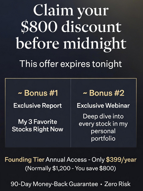 Everything you getHere’s what’s waiting for you on the other side: 📈 My Personal Compounding Quality Portfolio This is your last chance to claim both bonuses on top of this: ✨ An exclusive report featuring my 3 favorite stocks right now 🕛 Last chance: offer valid until midnight. Everything in life compounds, Disclaimer |