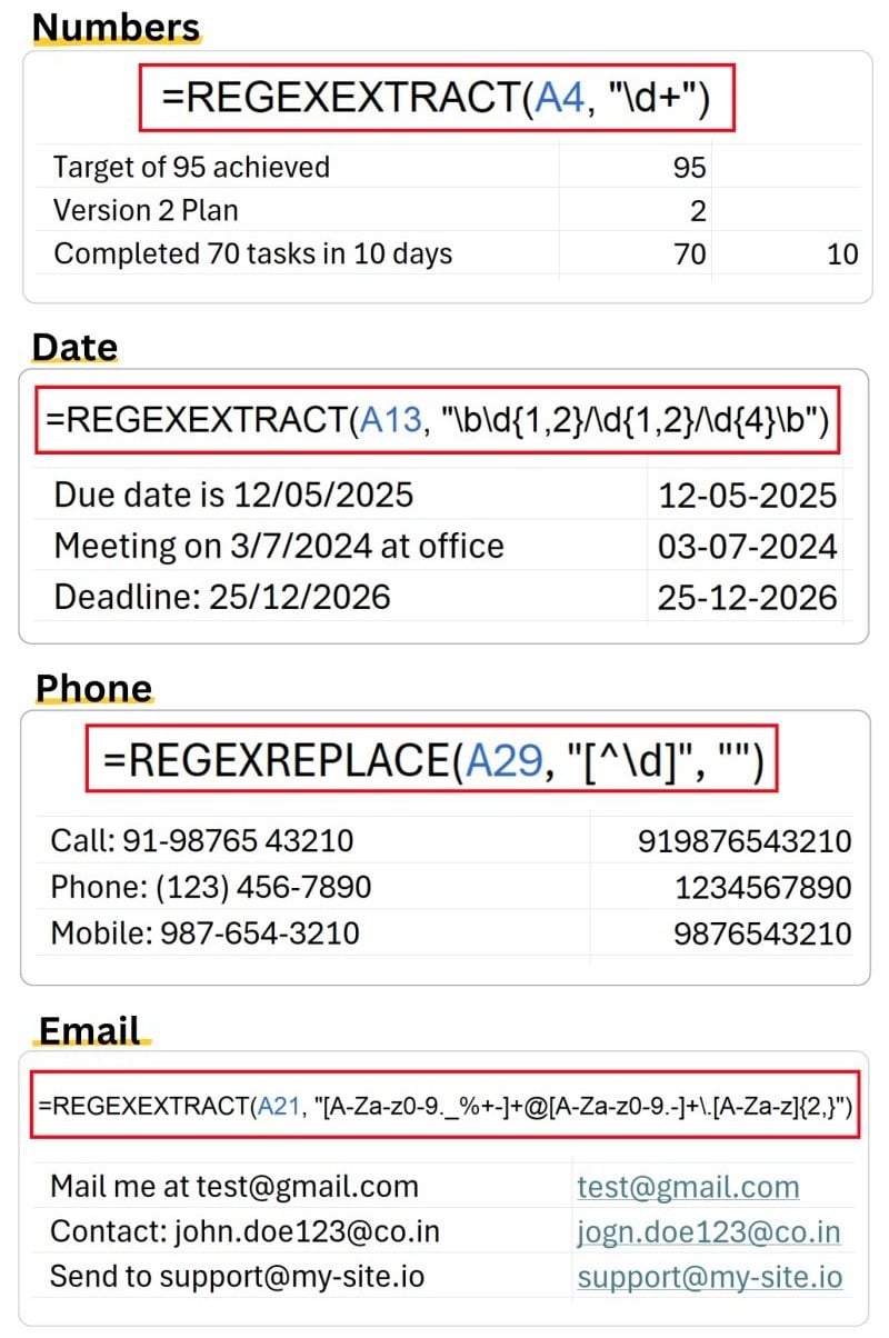 With REGEX, you can pull out things like numbers, dates, phone numbers, and