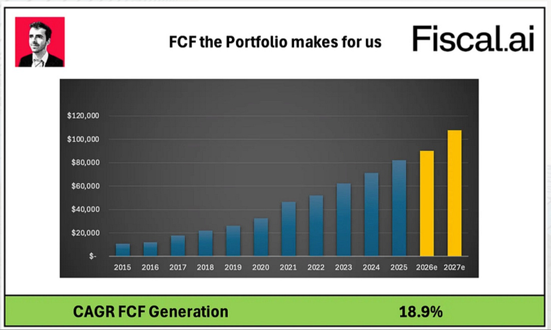 Hi Partner 👋 Over the past few weeks, we’ve been giving you an extensive Portfolio Update. In case you missed it: You know everything about our portfolio as well as the companies we might consider adding. But how will the portfolio evolve from here? Let’s find out. The best of the bestOur investable universe consists of 153 stocks. That’s 0.4% of the 40,000+ publicly traded stocks worldwide. Only the best of the best is good enough for us. We will continue to relentlessly track the underlying performance of our portfolio. Why? Stock prices always follow the evolution of the intrinsic value over time. The intrinsic value is mainly driven by the EPS and Free Cash Flow Per Share growth. But in the short run, stock prices and fundamentals can diverge a lot. While this can be painful at the time, it’s also what creates big opportunities. Warren Buffett says that’s what made him rich. Today is such a time if you ask me. It’s why we only worry about stock prices when we’re looking to buy or sell. In the meantime, we focus on the underlying fundamental performance. Here are the most important metrics to watch. 1. The evolution of the Free Cash Flow of Our Portfolio2. Our Portfolio Fundamentals |