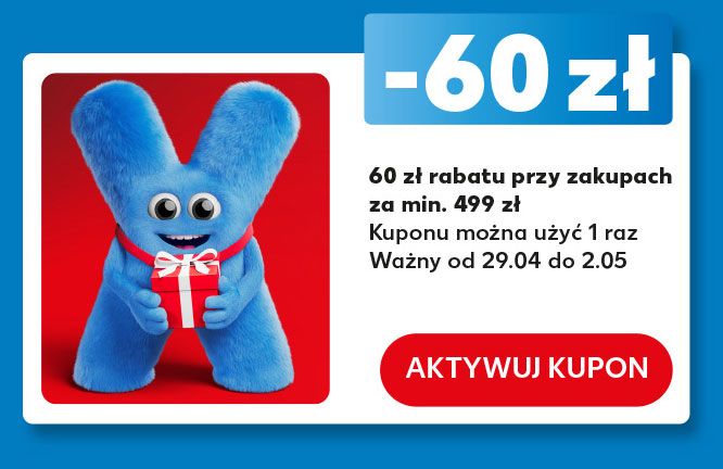 Na horyzoncie majówka, więc nie zwlekaj i leć po zakupy do Kauflandu! Aktywuj kupon 60 zł rabatu na zakupy za min. 499 zł z Kaufland Card XTRA. Kupon jest ważny od 29 kwietnia do 2 maja. Zapraszamy! Produkty wykluczone w opisie kupon.